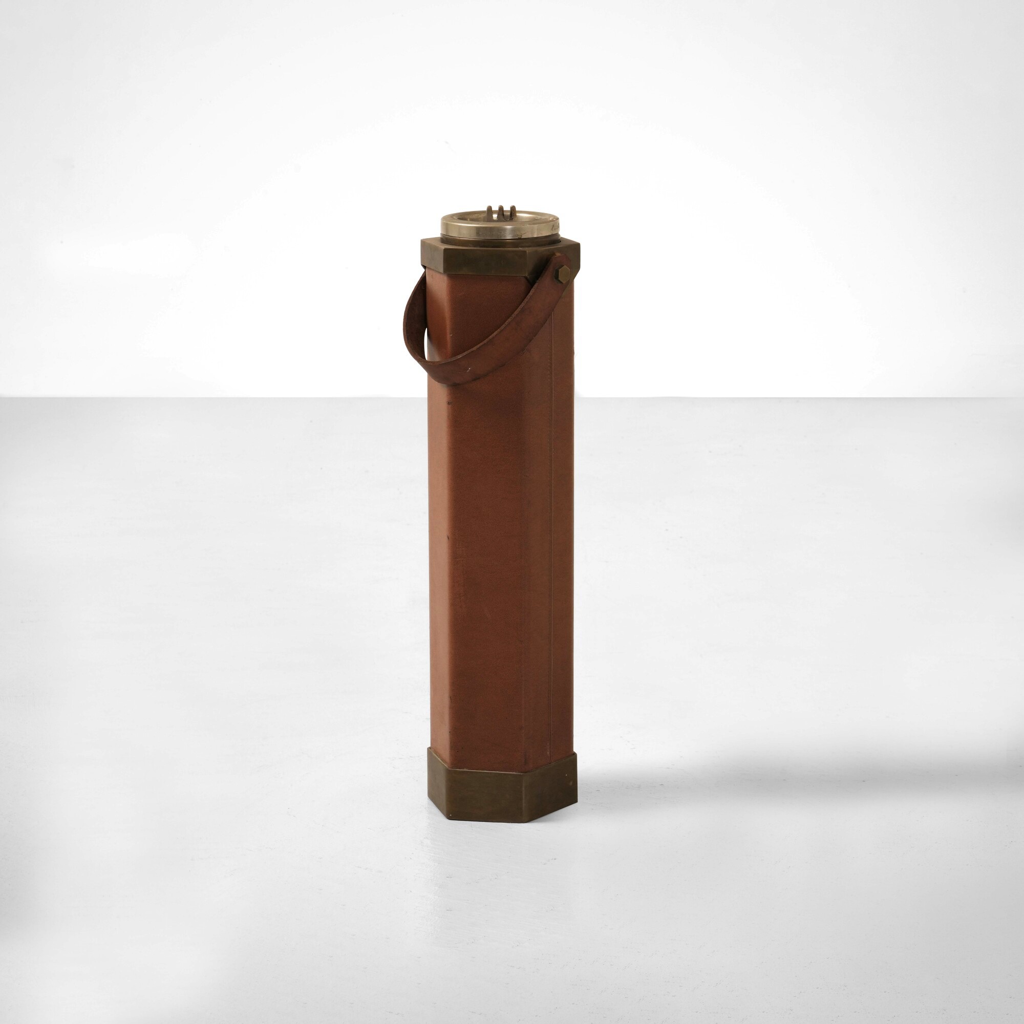 Struttura in metallo e ottone, rivestimento in cuoio.