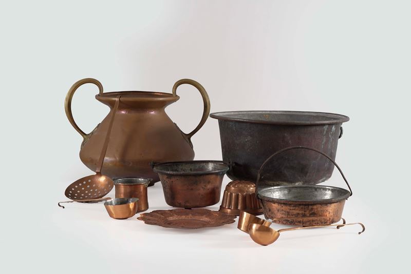 Lotto di oggetti in rame di diversa foggia