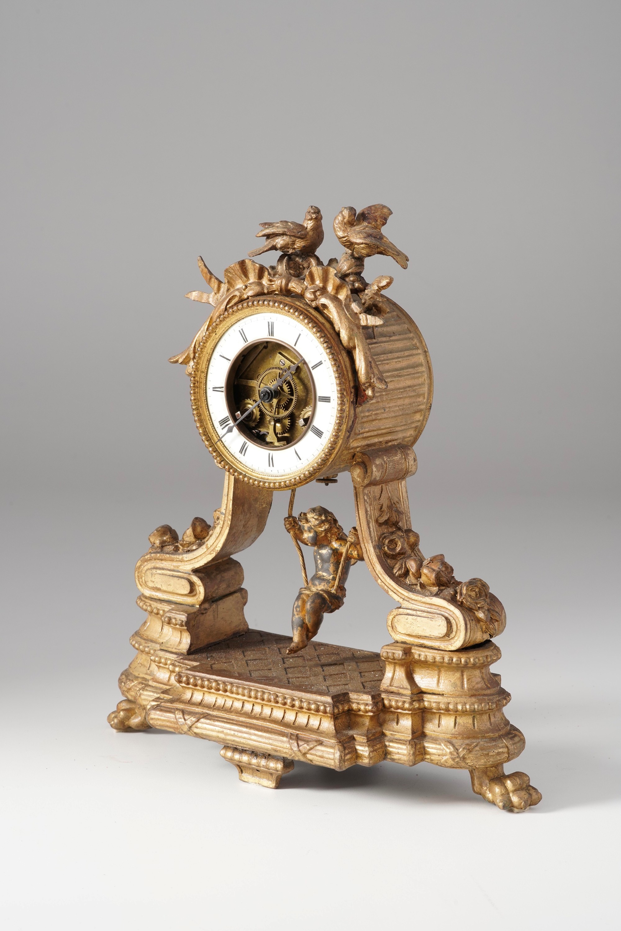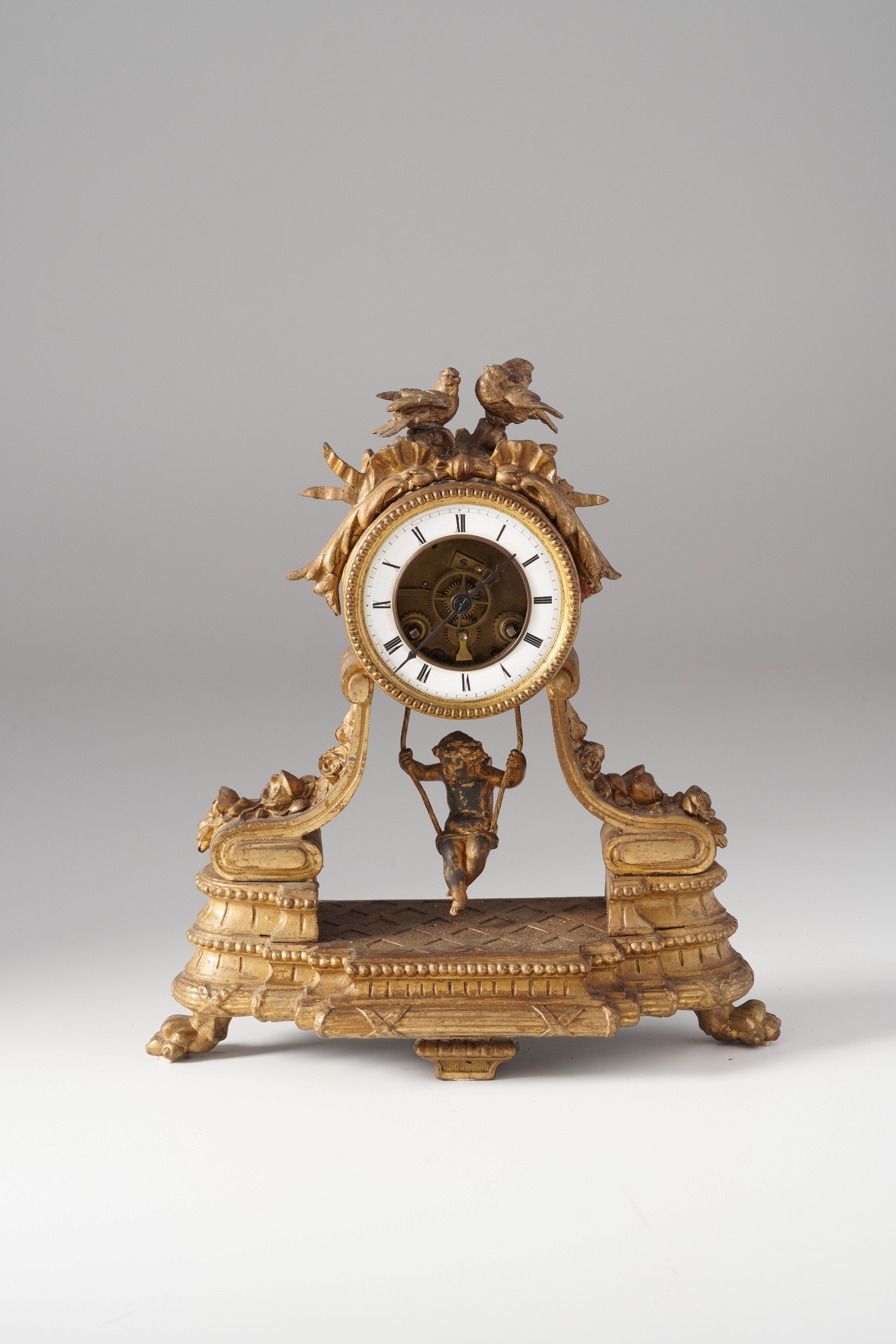 Pendola da tavolo in metallo dorato. Francia XIX secolo
