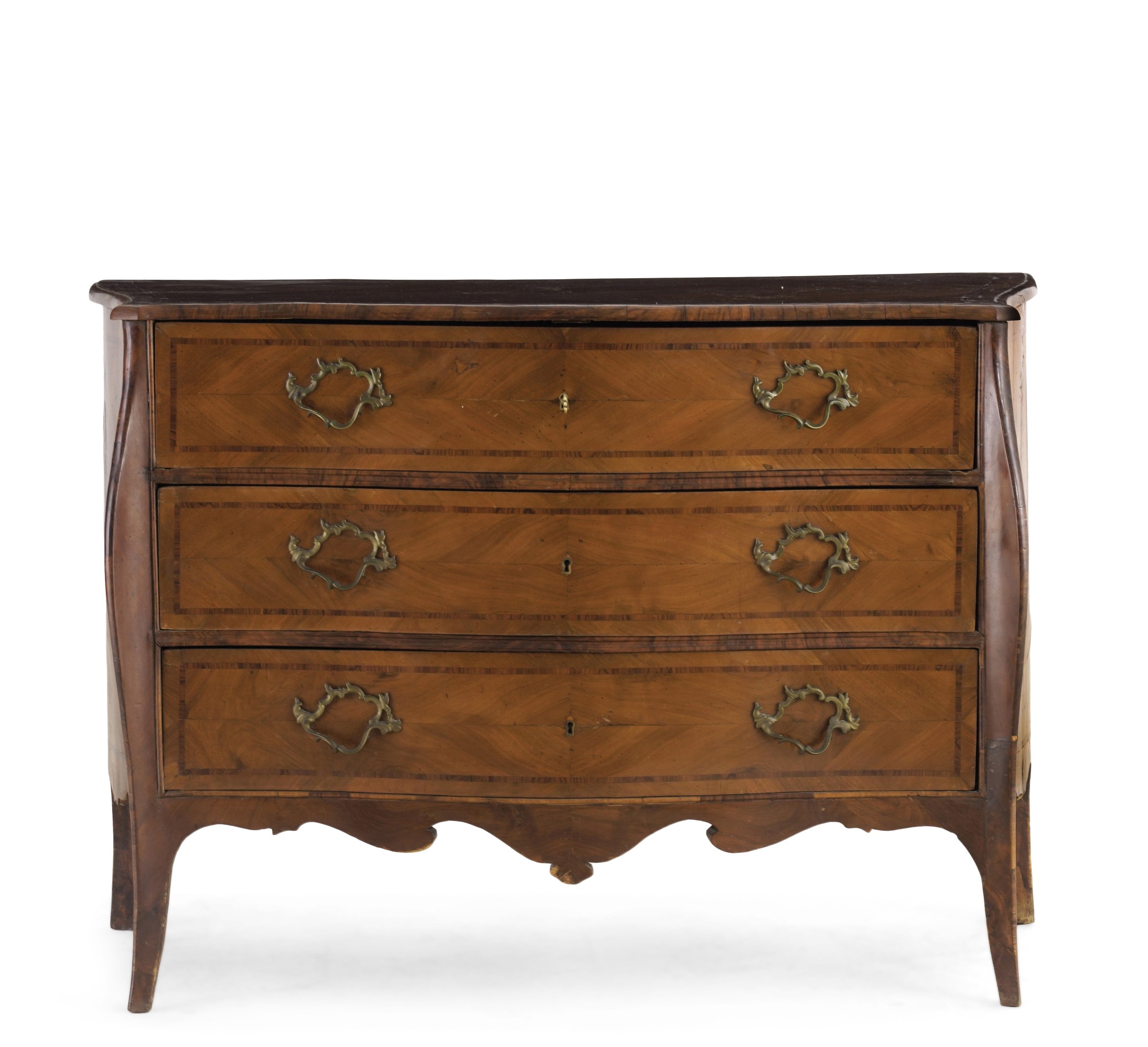 A tre cassetti, fronte e fianchi mossi, piano sagomato