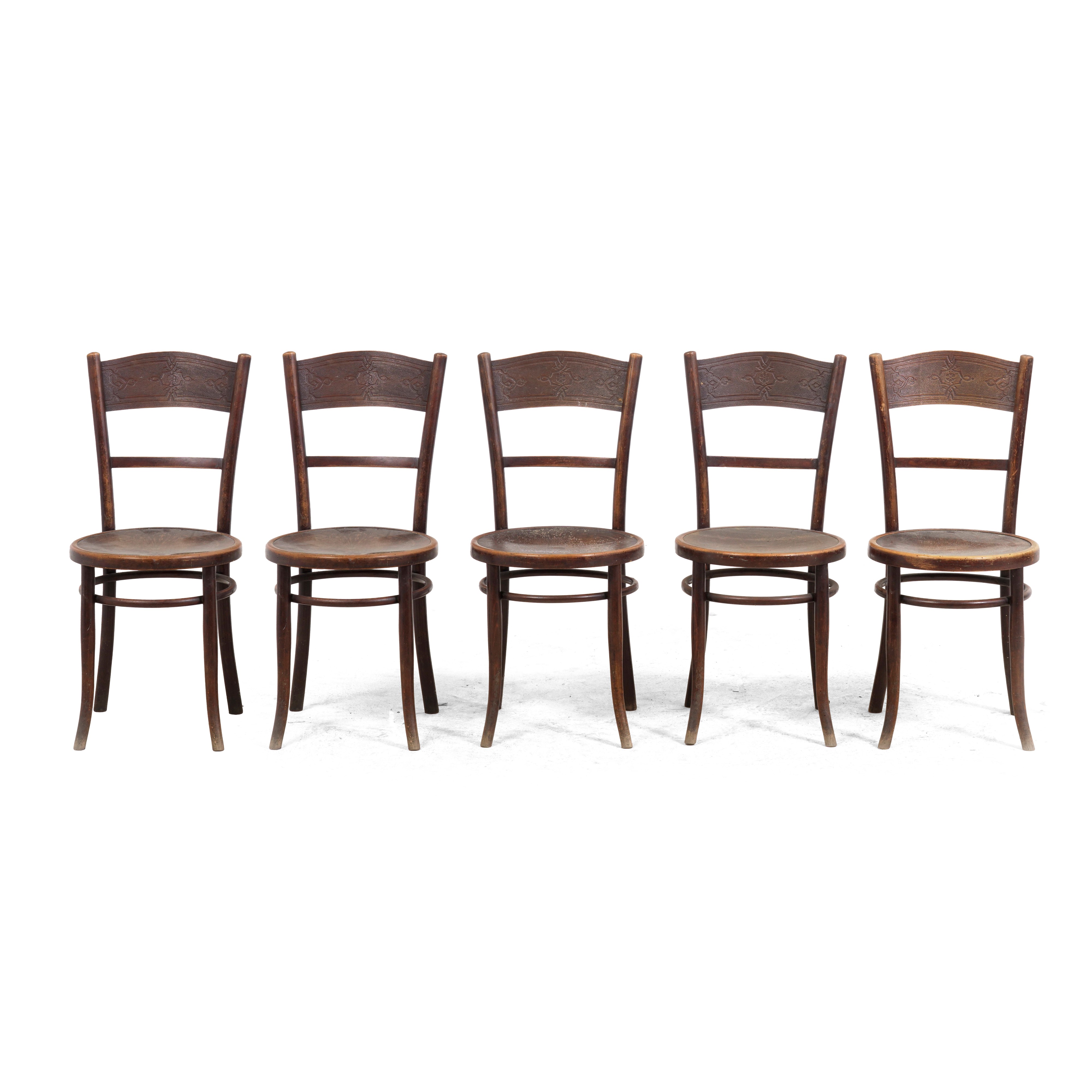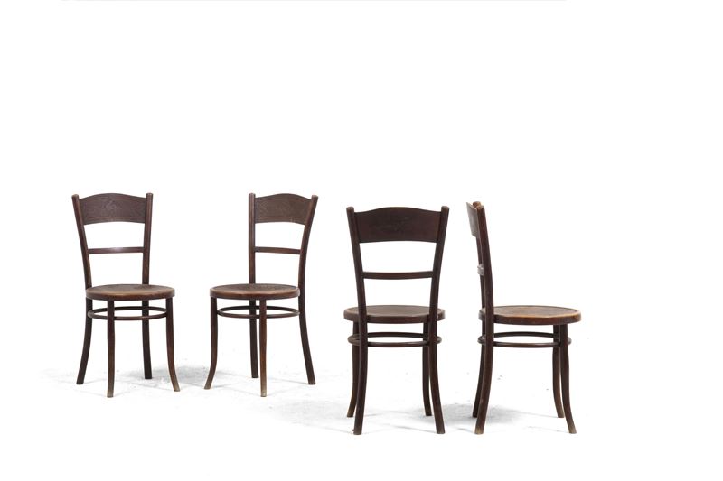 Cinque sedie in legno. XX secolo