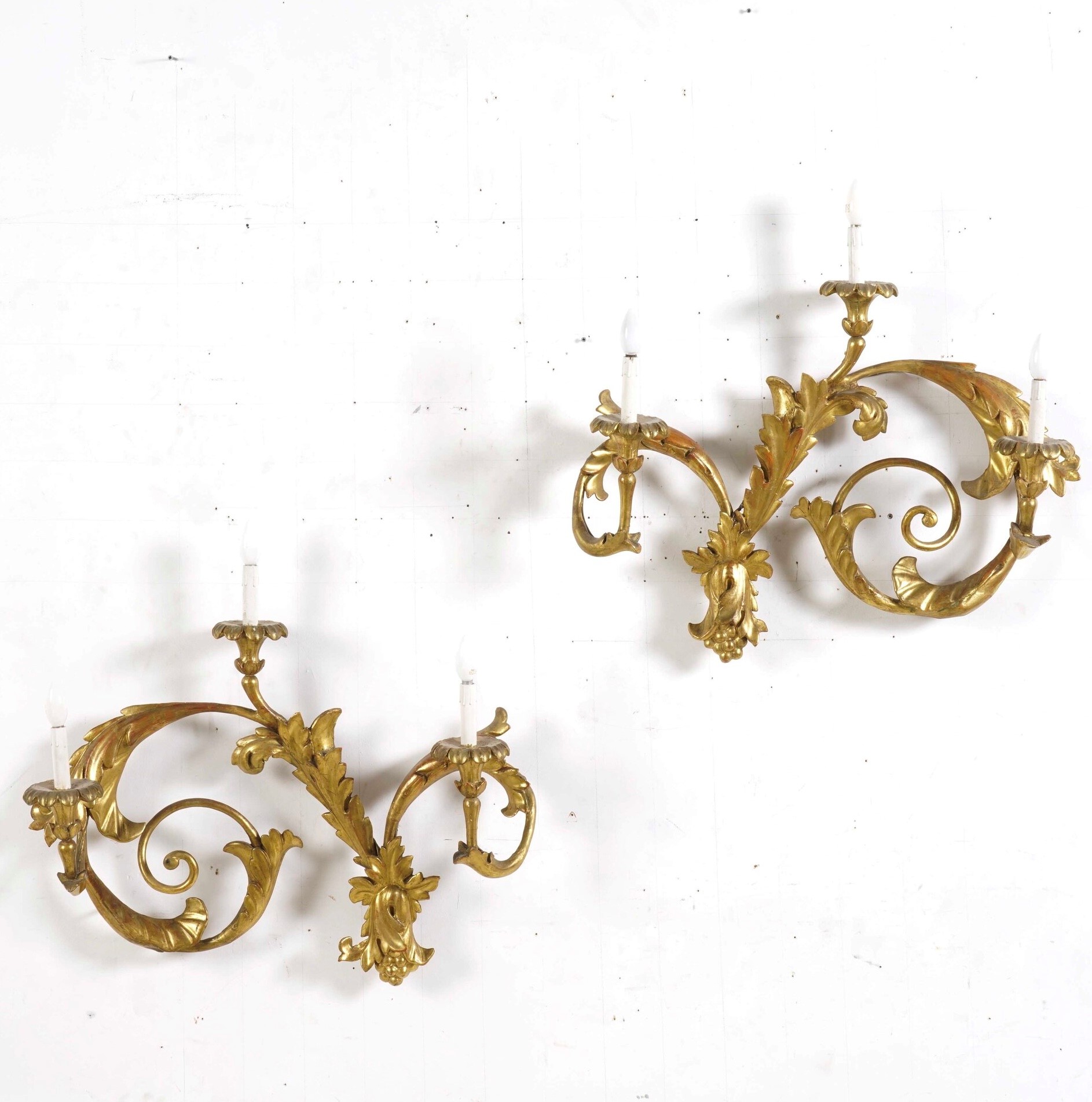 Coppia di appliques in legno intagliato e dorato. XVIII-XIX secolo