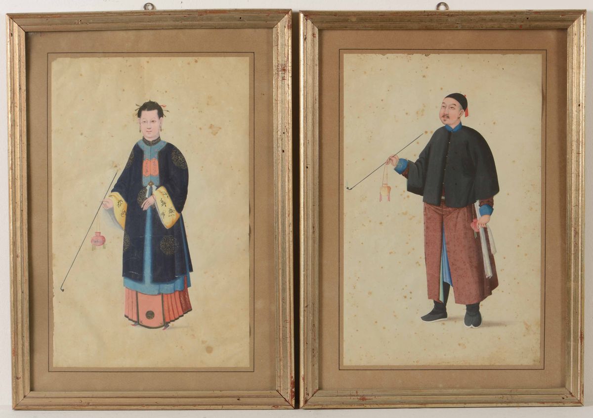 Coppia di dipinti su carta raffiguranti personaggi, Cina, Dinastia Qing, XIX secolo