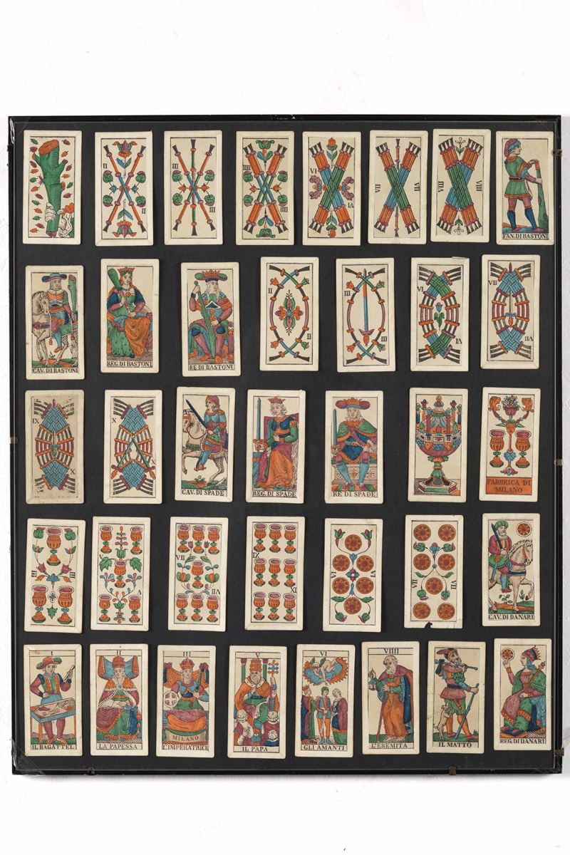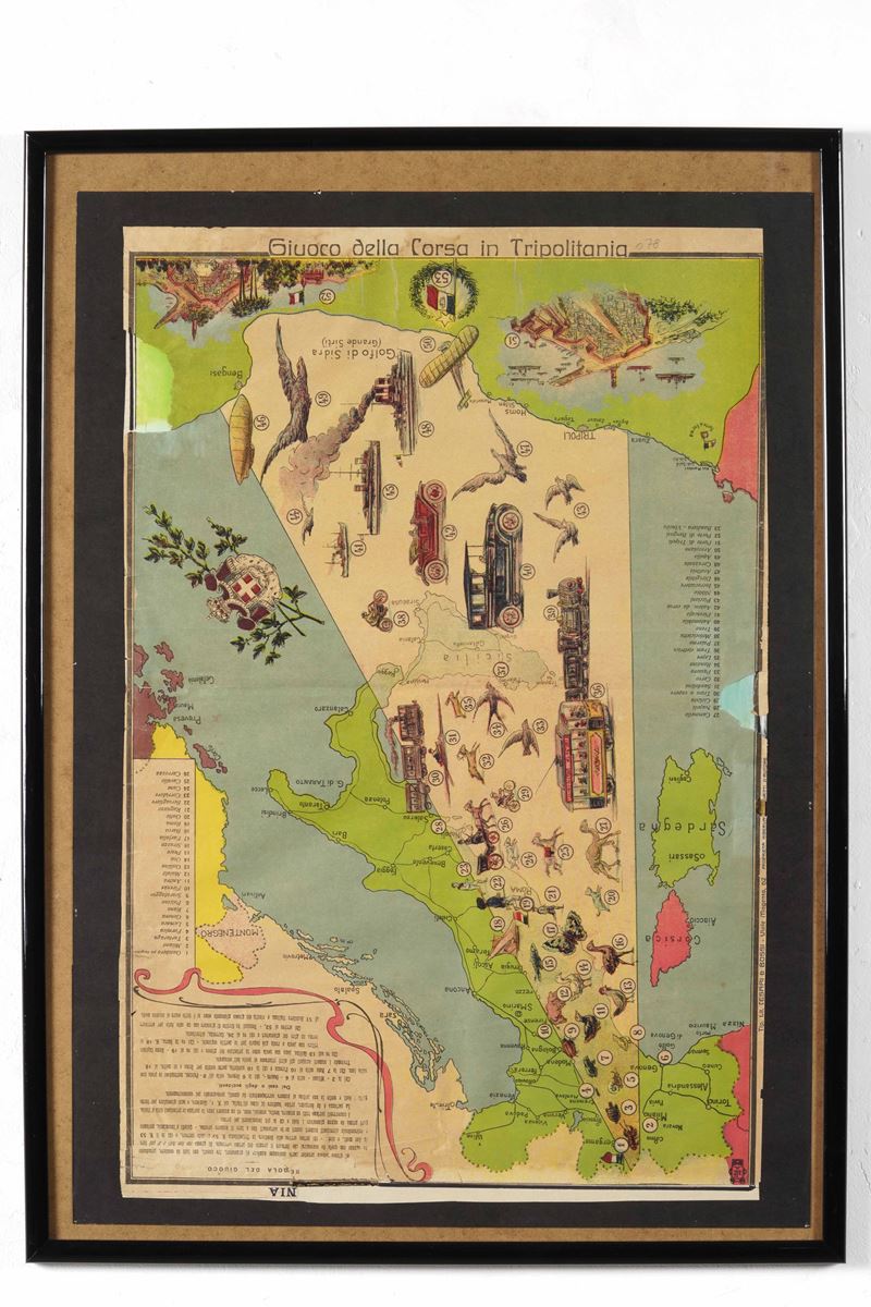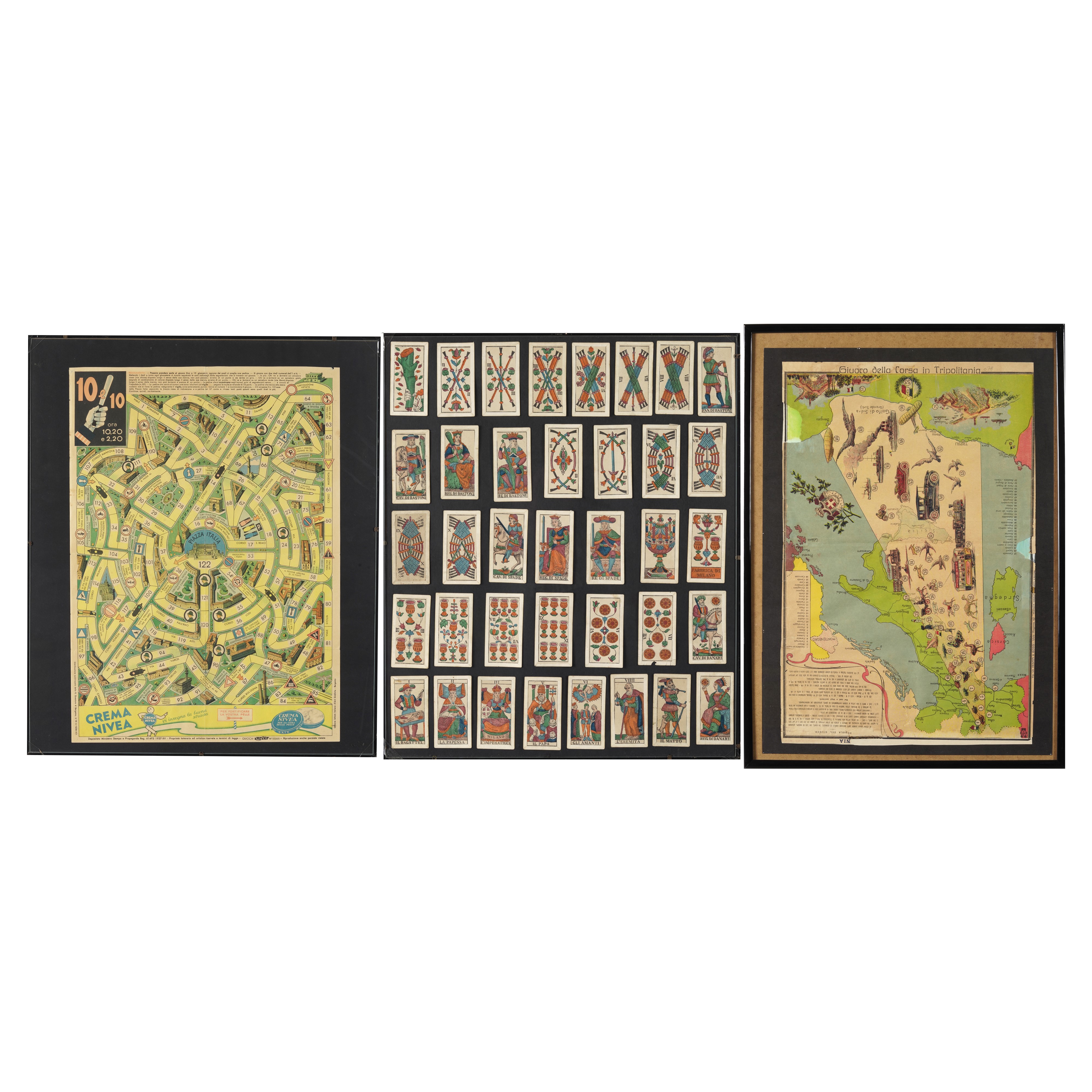 Gioco da tavolo "Corsa in Tripolitania", "10 e 10" e alcune carte dei tarocchi