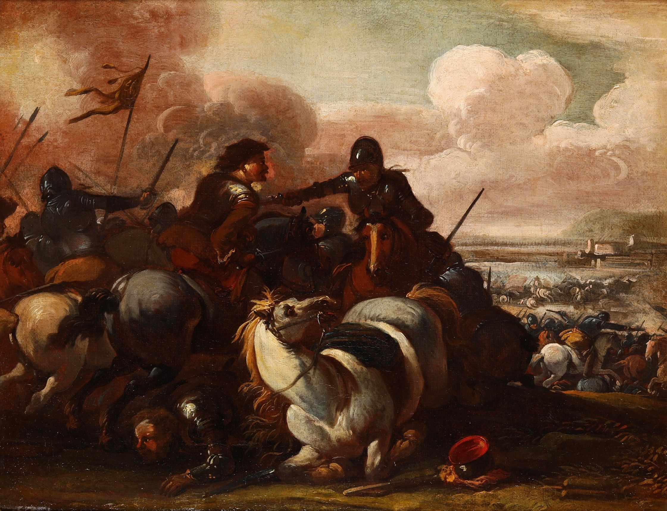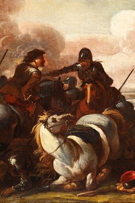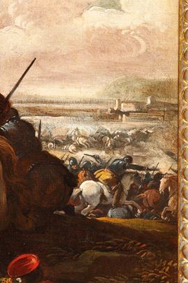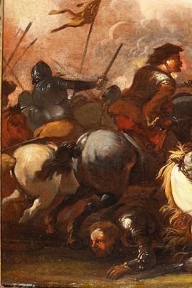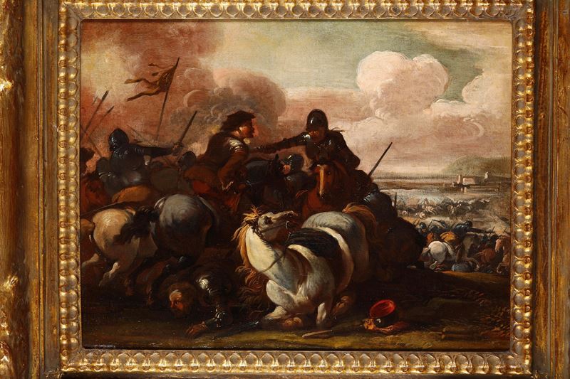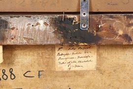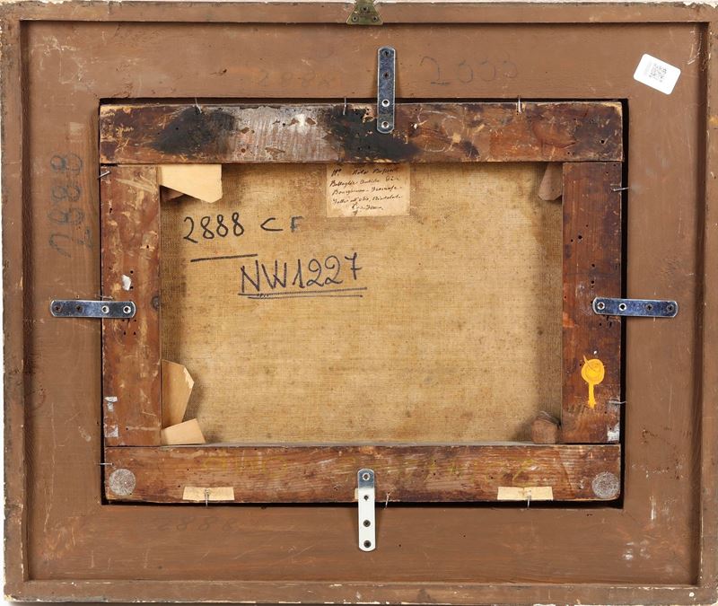 reca al retro antica etichetta con vecchia attribuzione a Borgognone