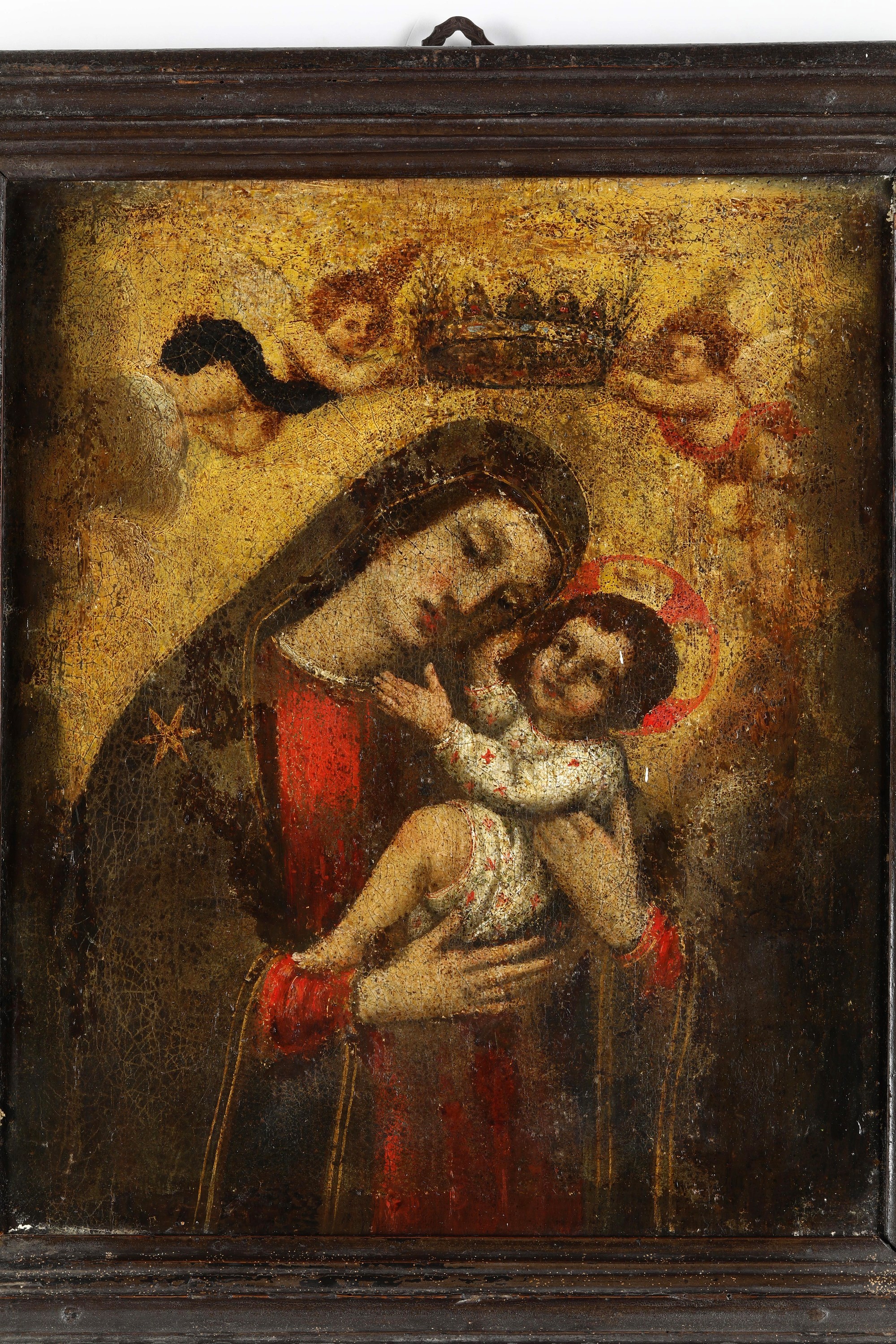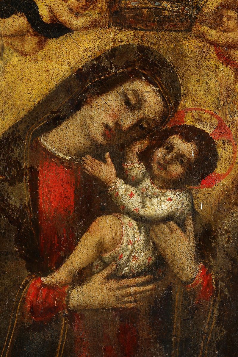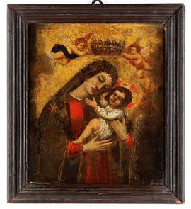 Scuola del XVII-XVIII secolo Madonna con bambino incoronata da due angeli