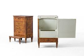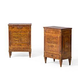 Coppia di comodini Luigi XVI lastronati e intarsiati. XVIII secolo