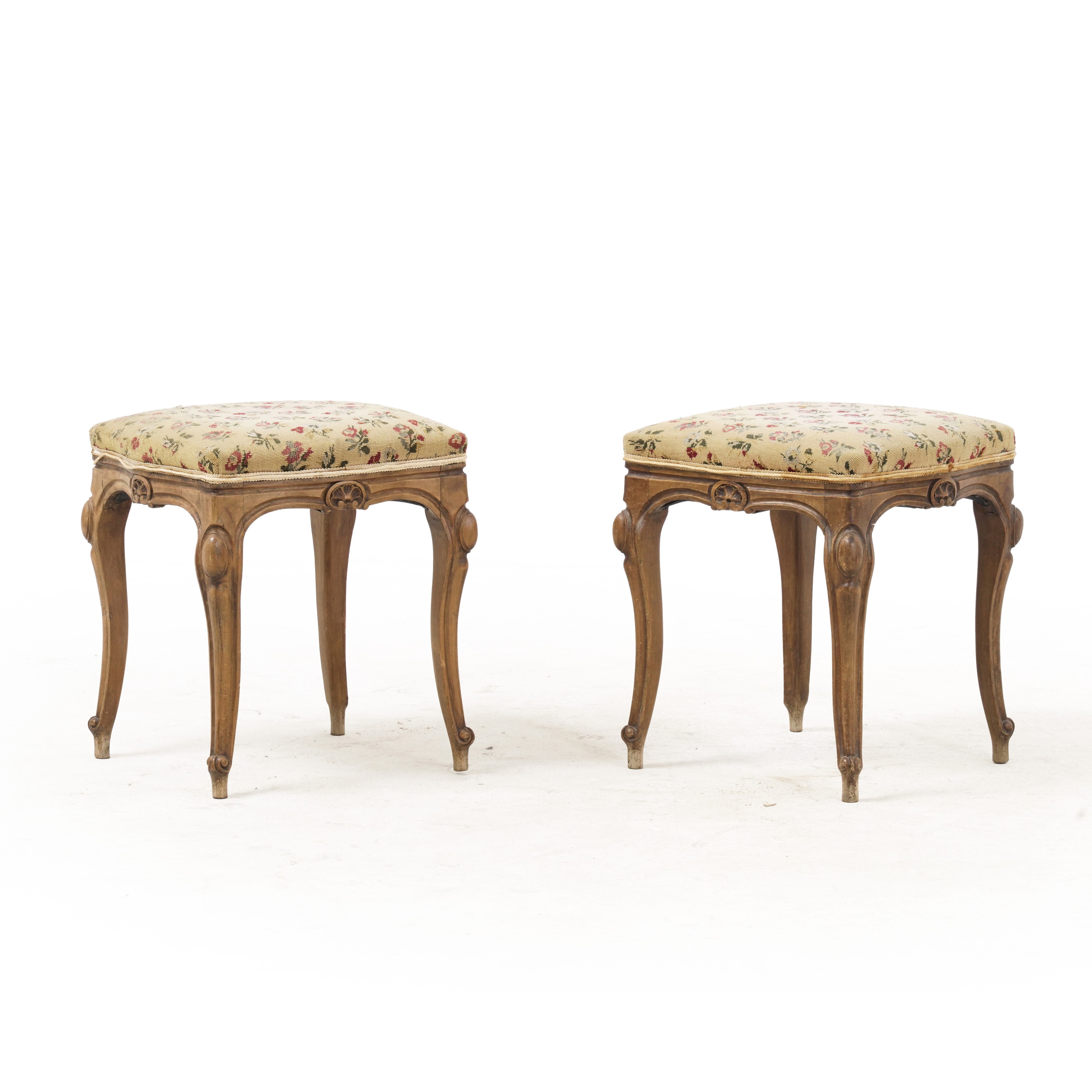 Coppia di panchetti in stile settecentesco. Fine XIX-inizi XX secolo