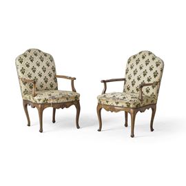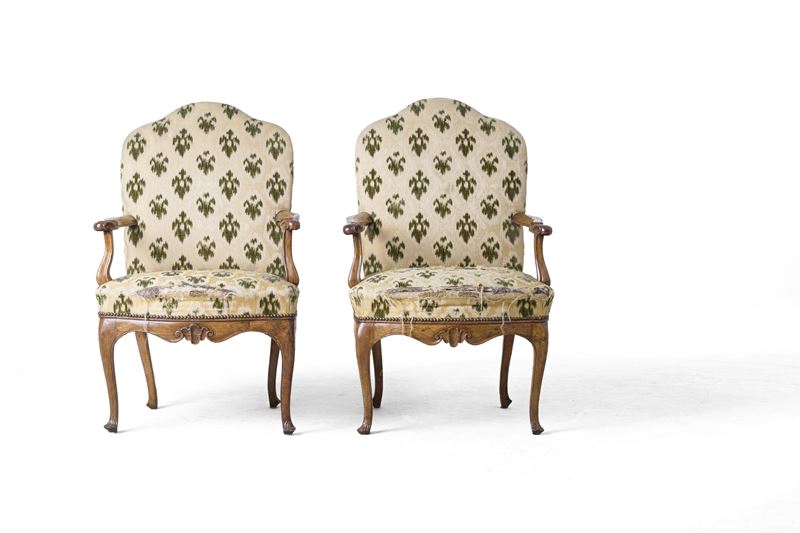 Coppia di poltrone in noce. XVIII secolo