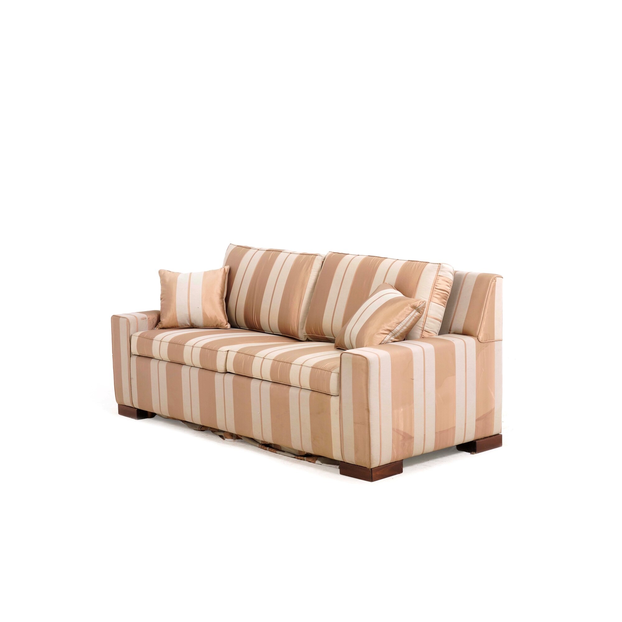 Divano a due posti rivestito in tessuto a strisce