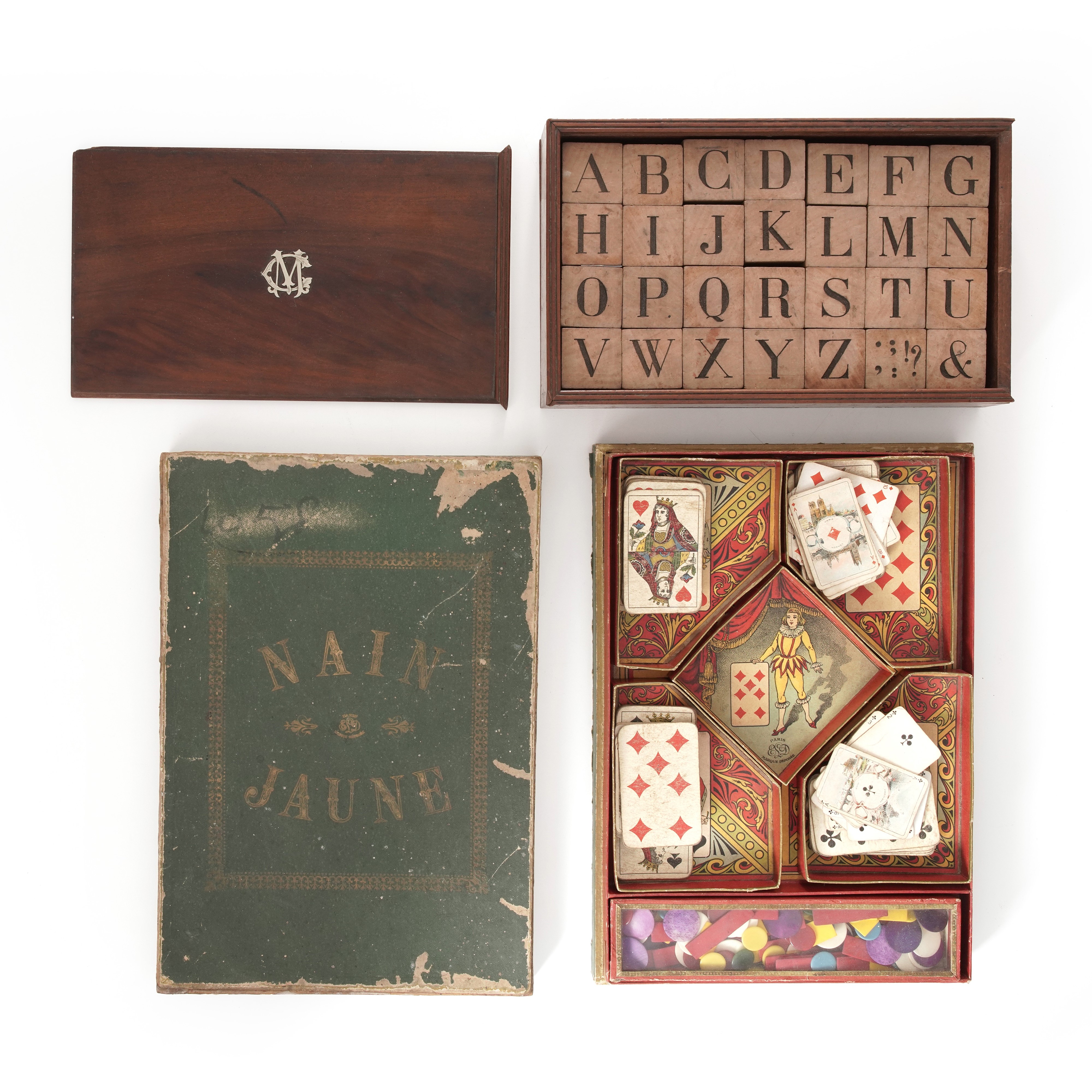 Due scatole con giochi d’epoca, tra cui Main Jaune