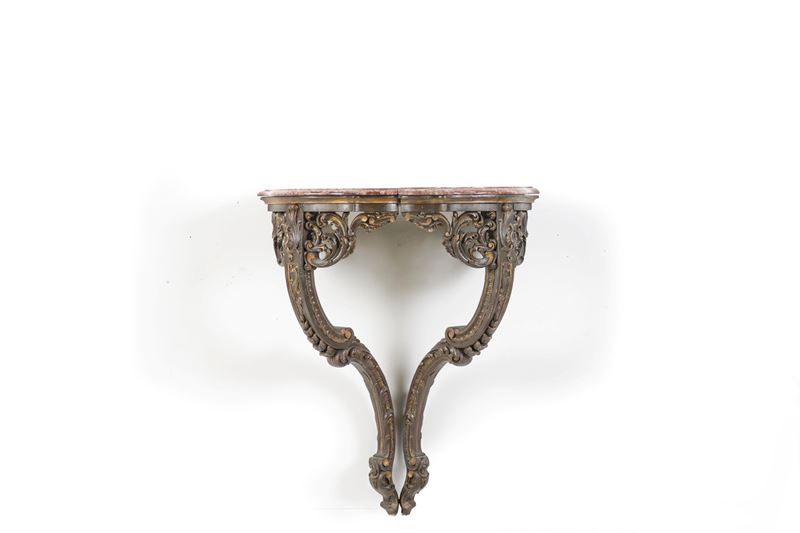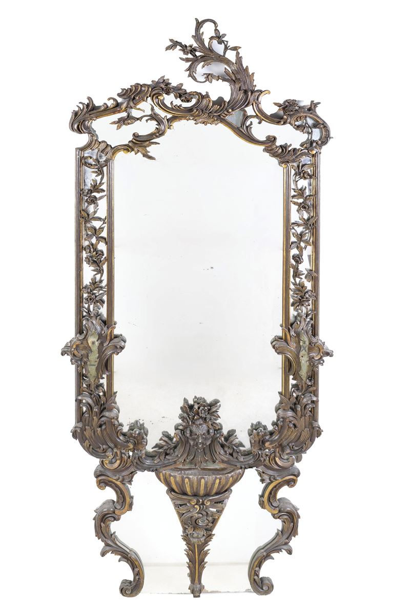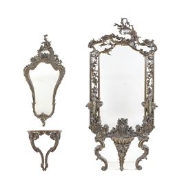 Lotto composto da una grande specchiera, una specchiera e una consolle con il piano in marmo in stile Luigi XV