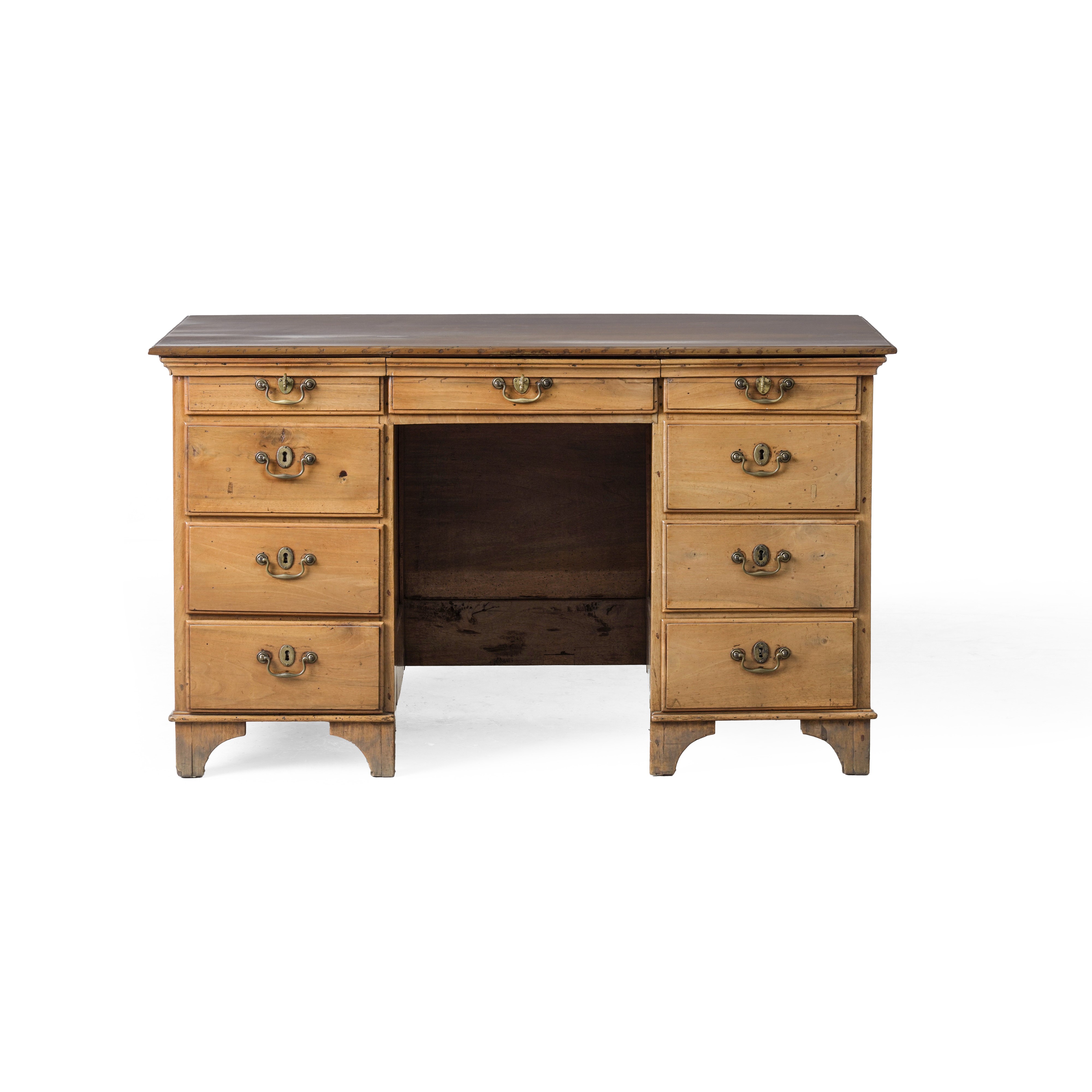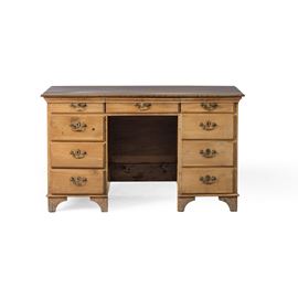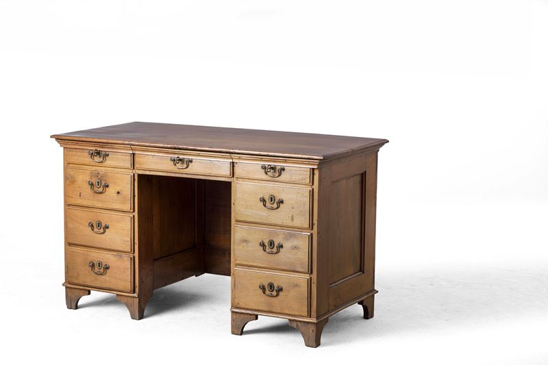Scrivania di legno tinto noce con nove cassetti, fine XIX secolo
