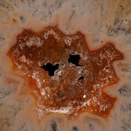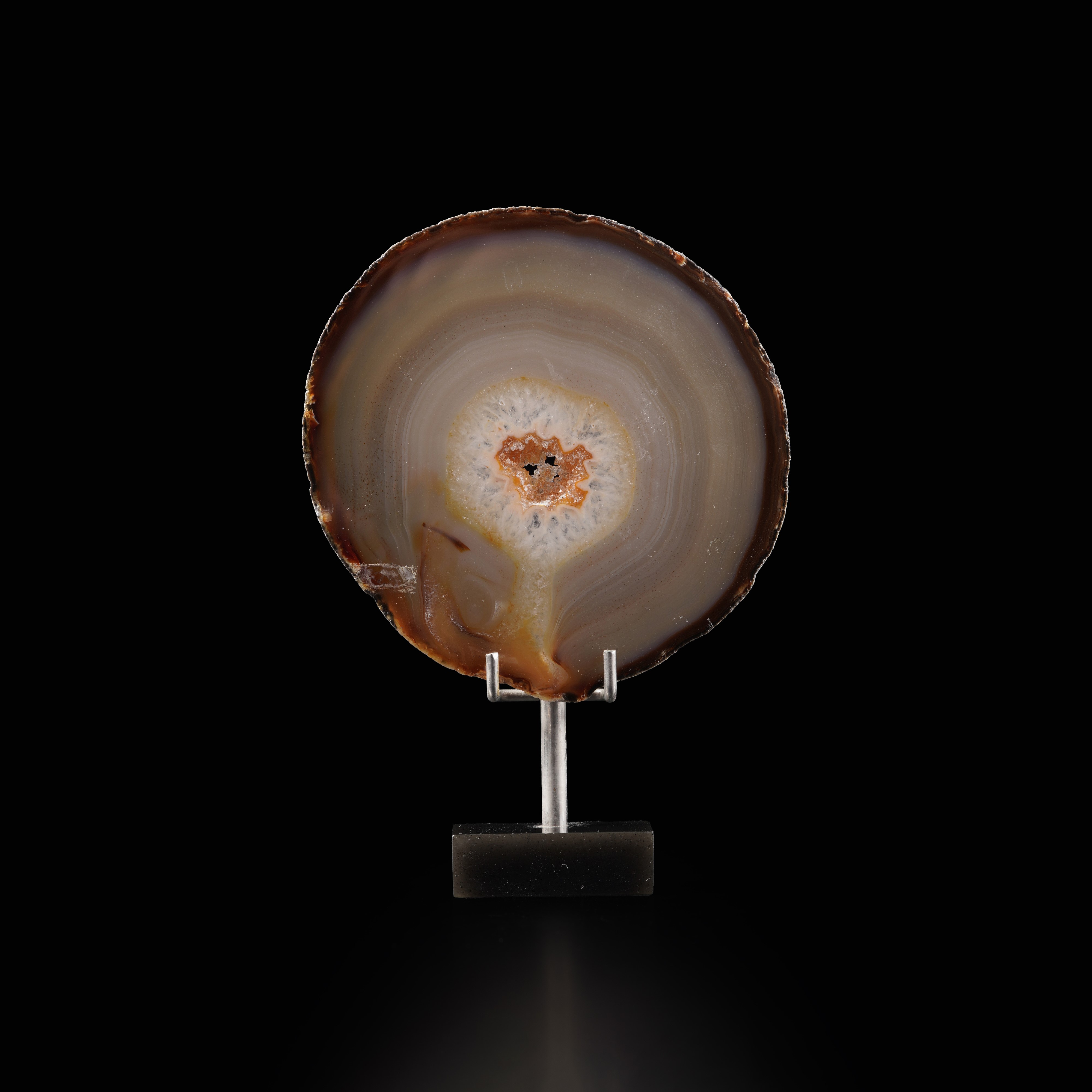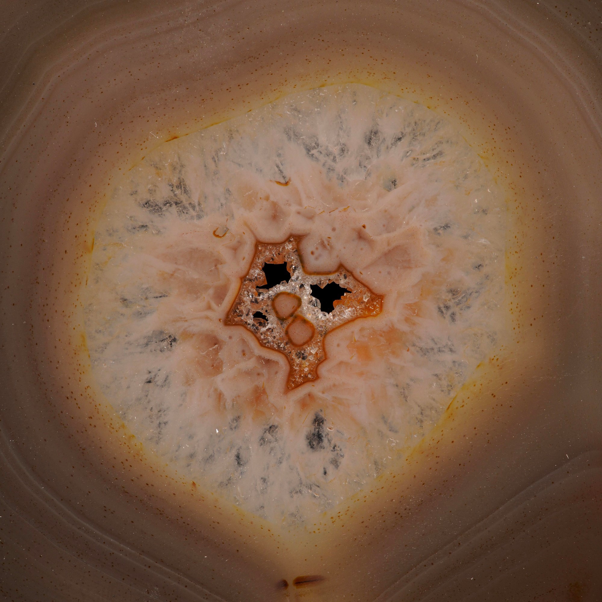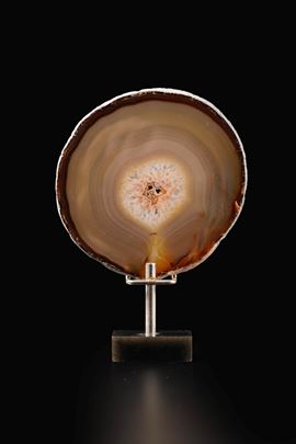 Splendida sezione di agata con cristalli di quarzo citrino al centro