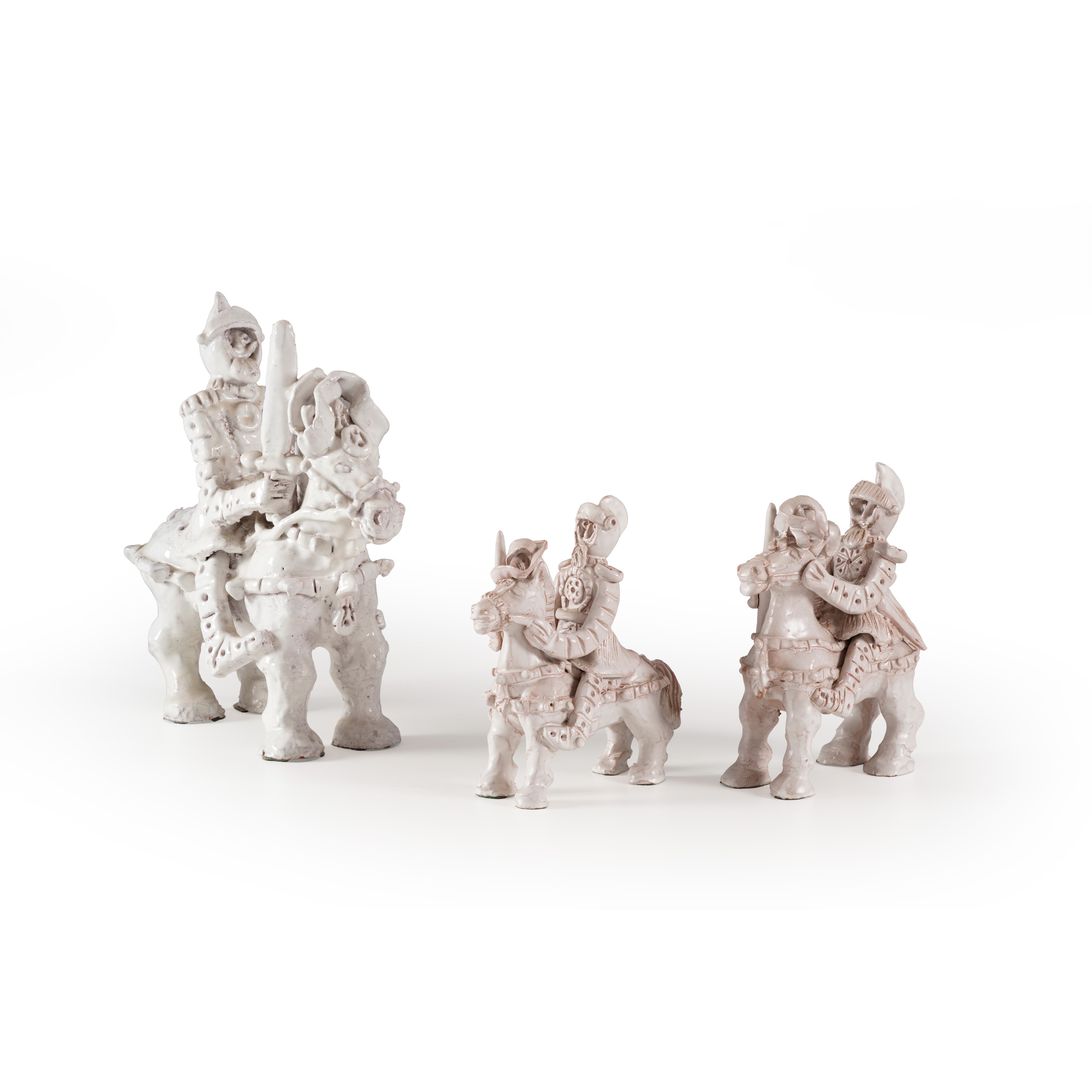 Tre armigeri a cavallo, a firma Chiavari, XIX-XX secolo
