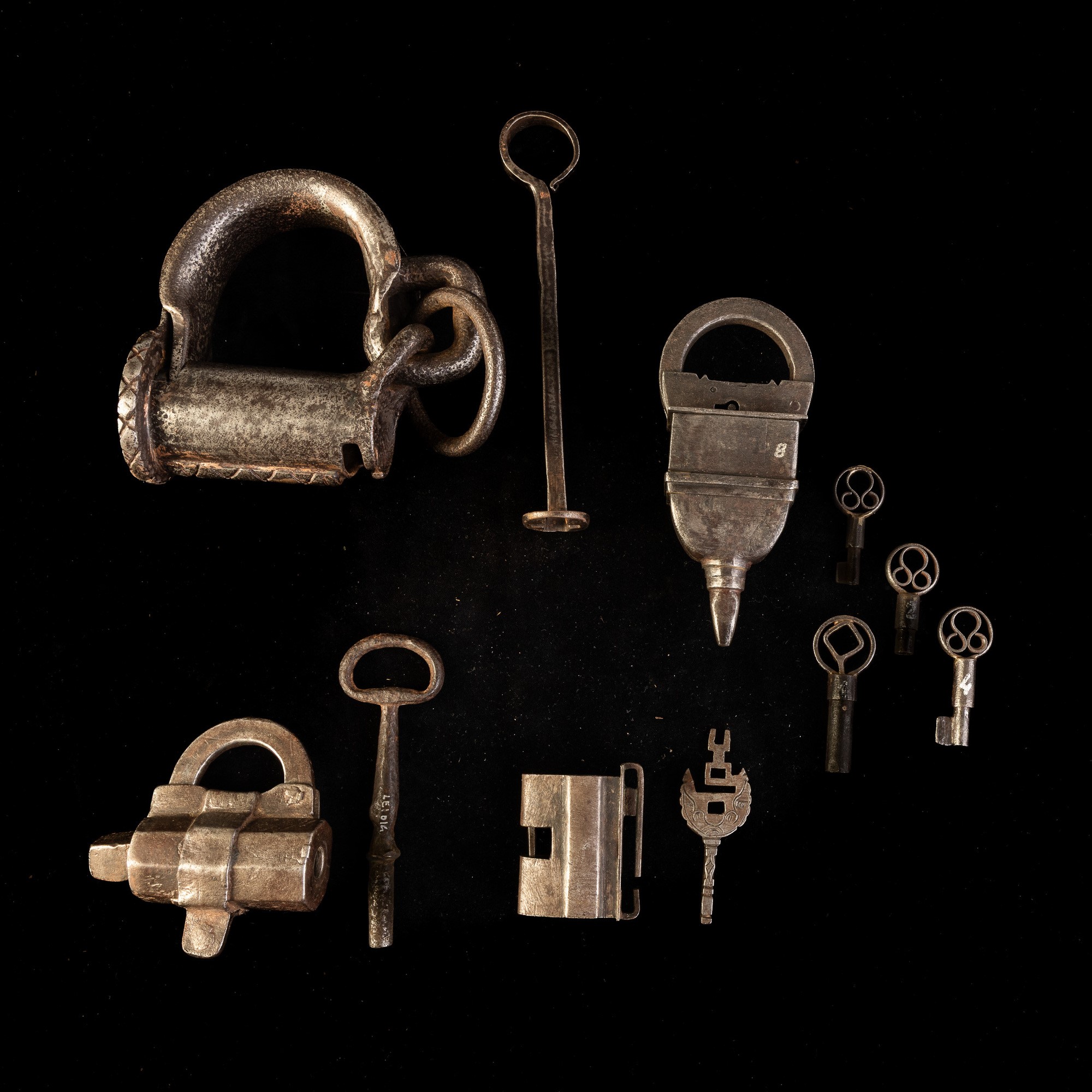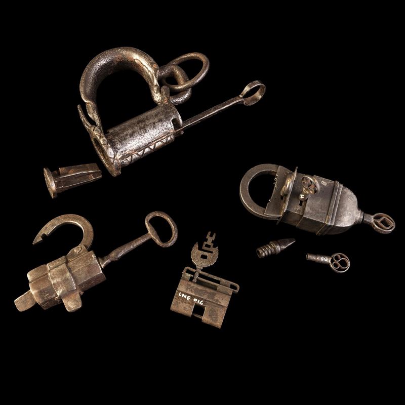 Quattro lucchetti in ferro battuto. Iran, XIX secolo