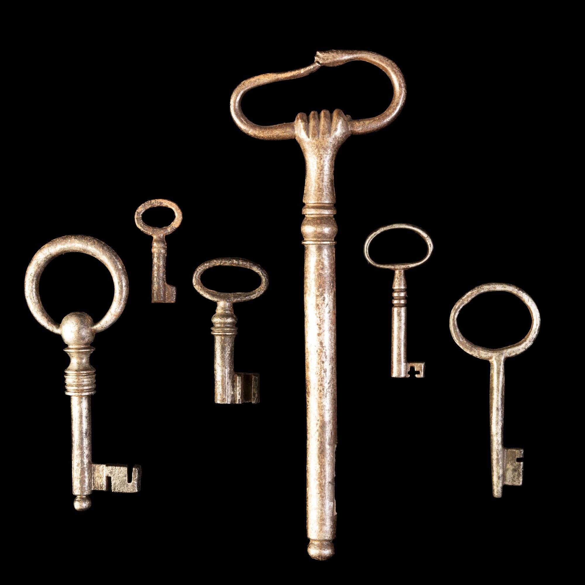 Sei chiavi in ferro forgiato. Italia, XIX-XX secolo