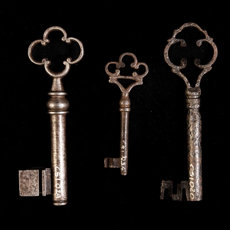 Tre chiavi in ferro forgiato. Italia settentrionale, XVIII secolo