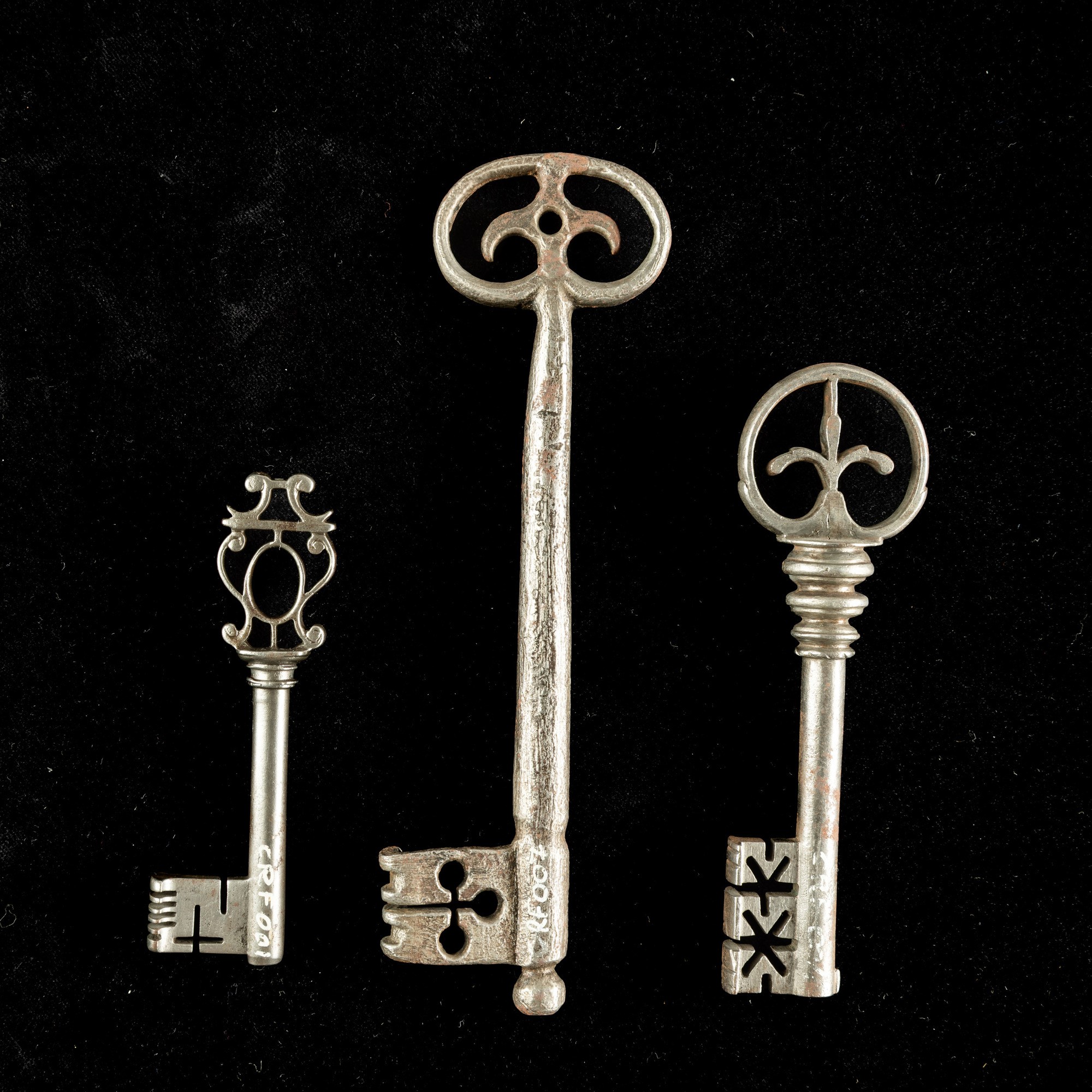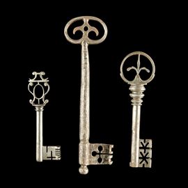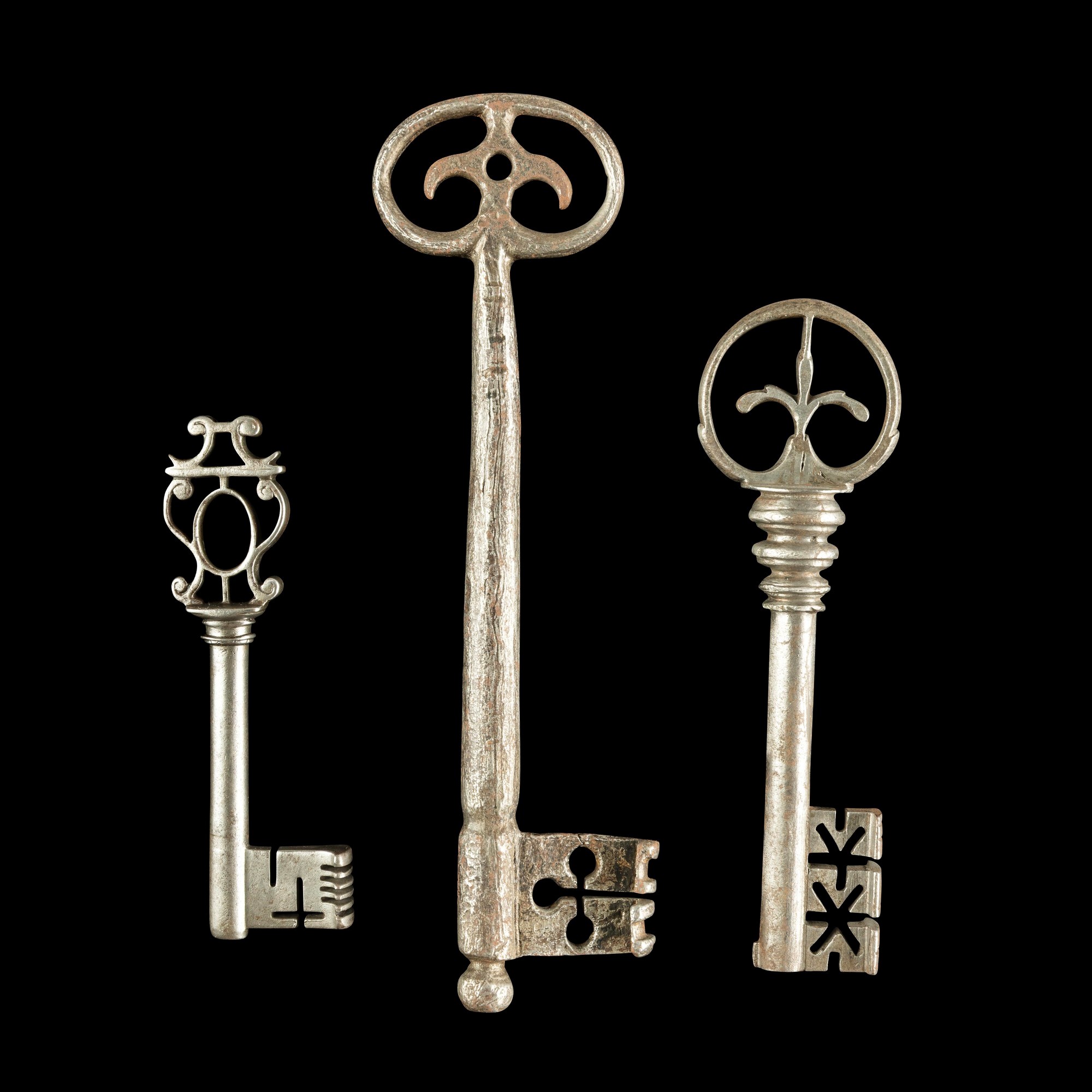 Tre chiavi rinascimentali in ferro forgiato. Francia, XVI secolo