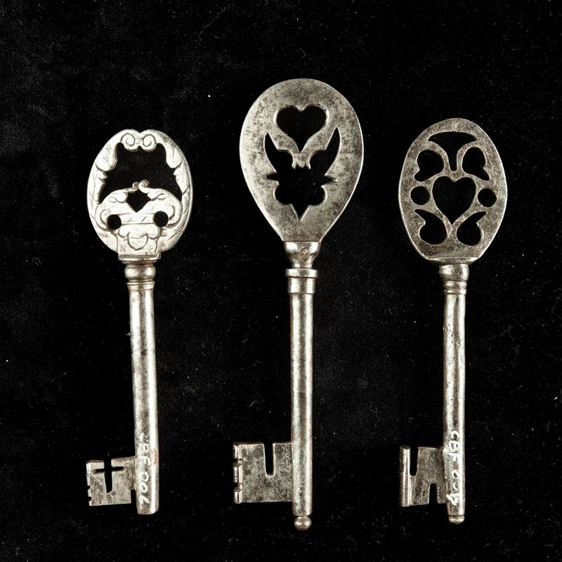 Tre clés de mariage in ferro forgiato. Francia, XVII secolo