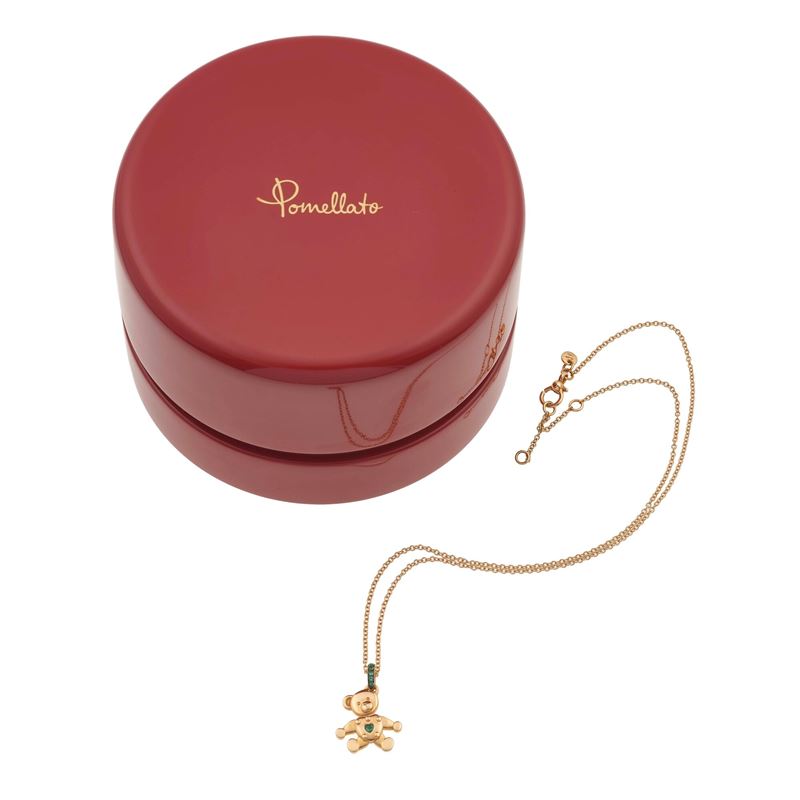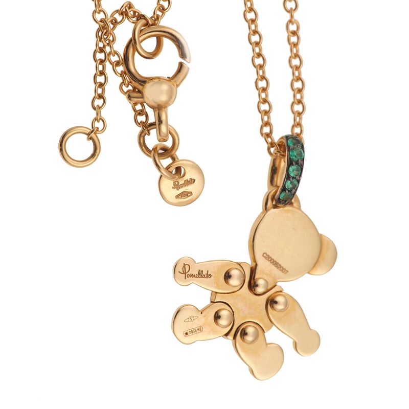 Emerald and gold "Orsetto" pendent necklace. Signed Pomellato. Pendant numbered n. C200052007, necklace numbered n. C199070198. Fitted case