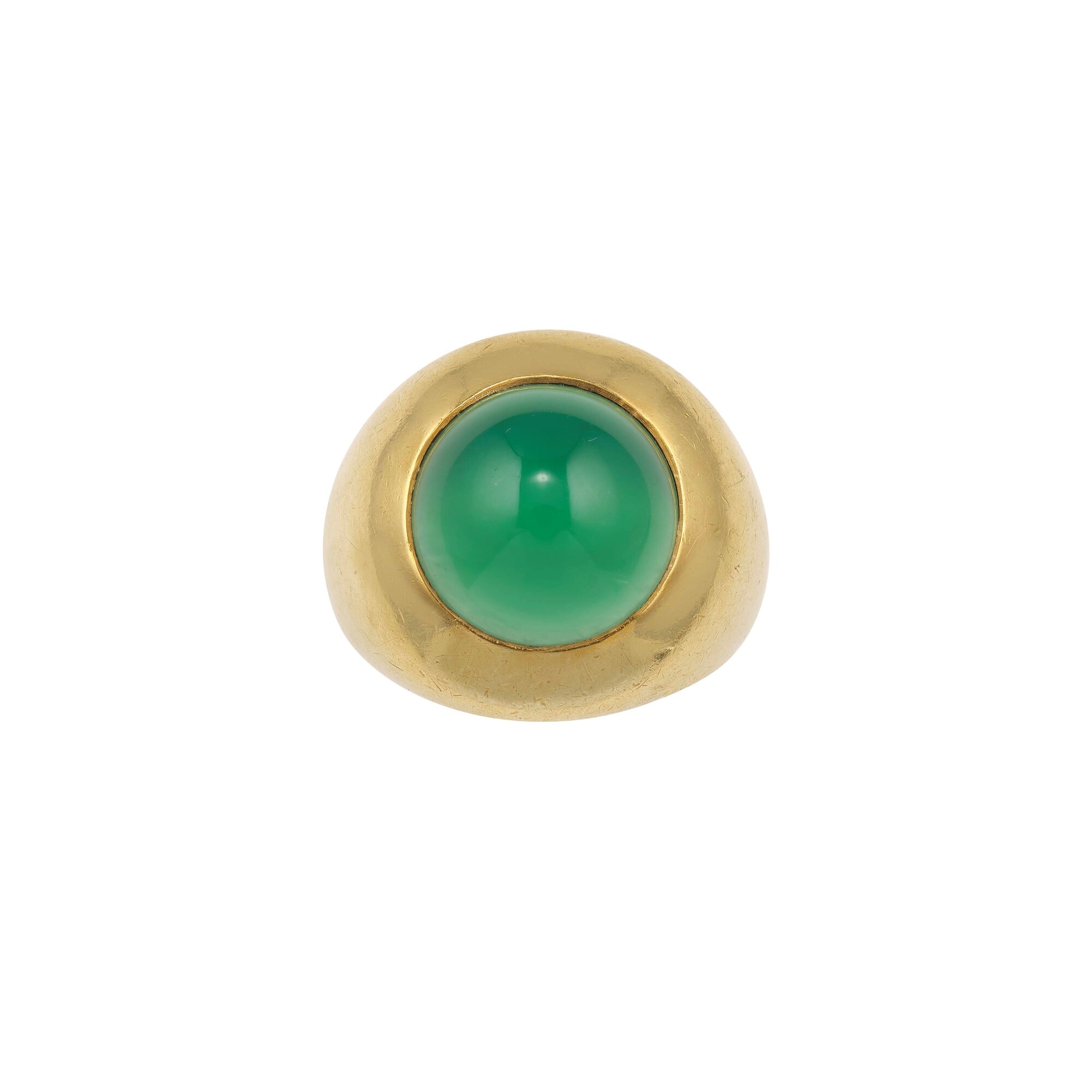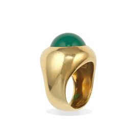 Green chalcedony and gold ring