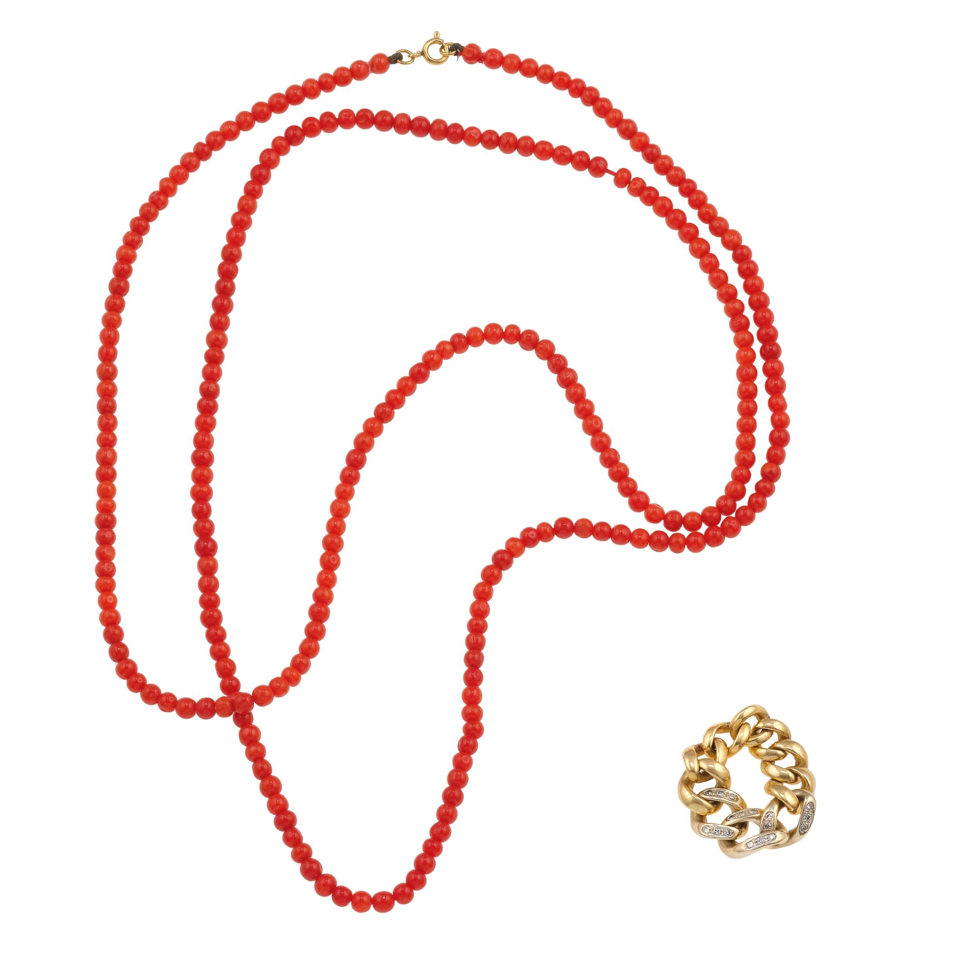 Group of coral and gold jewels