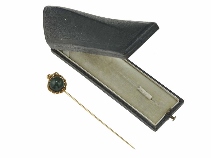 Hardstone and gold pin. Fitted case