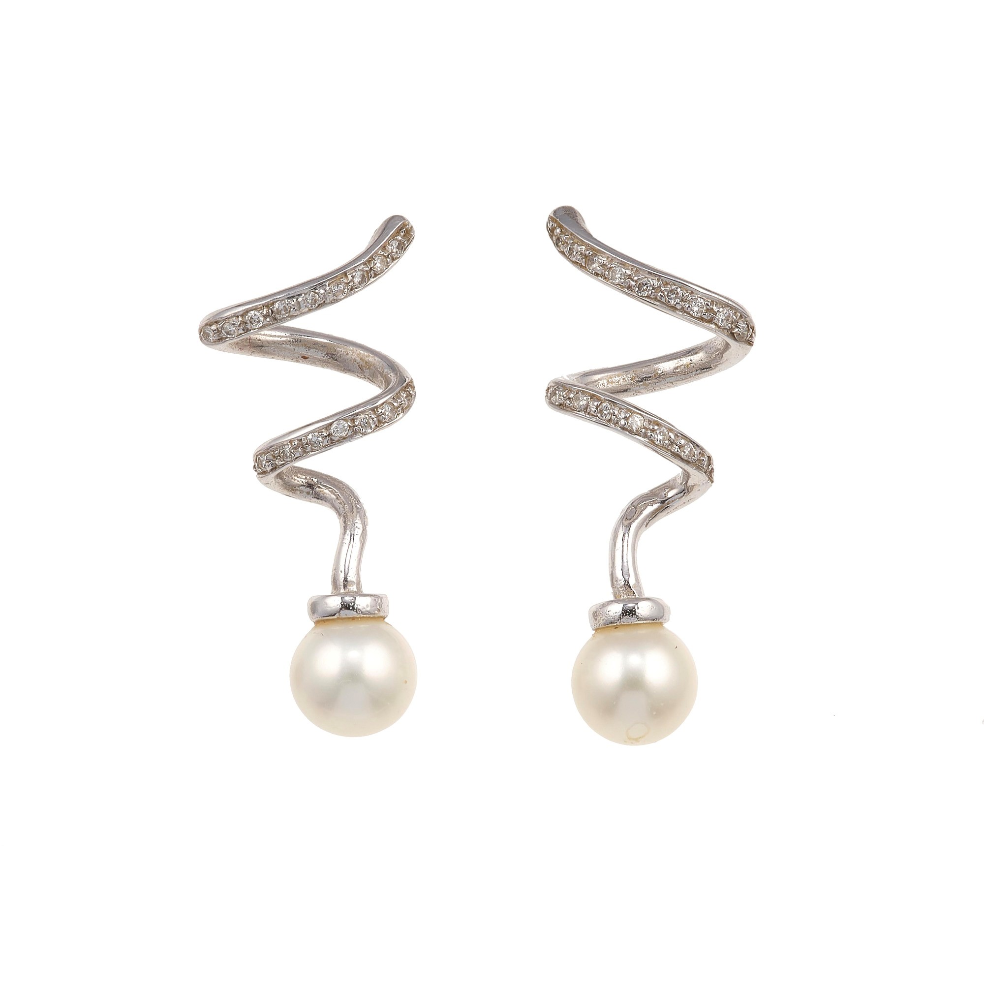 Pair of diamond, pearl and gold earrings
