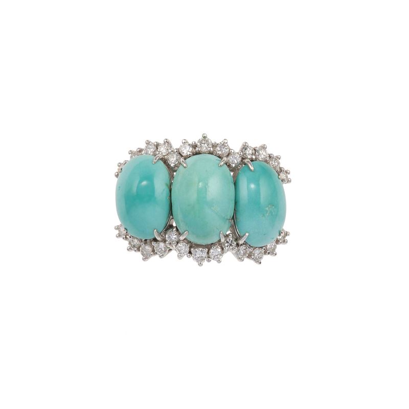 Turquoise, diaond and gold ring