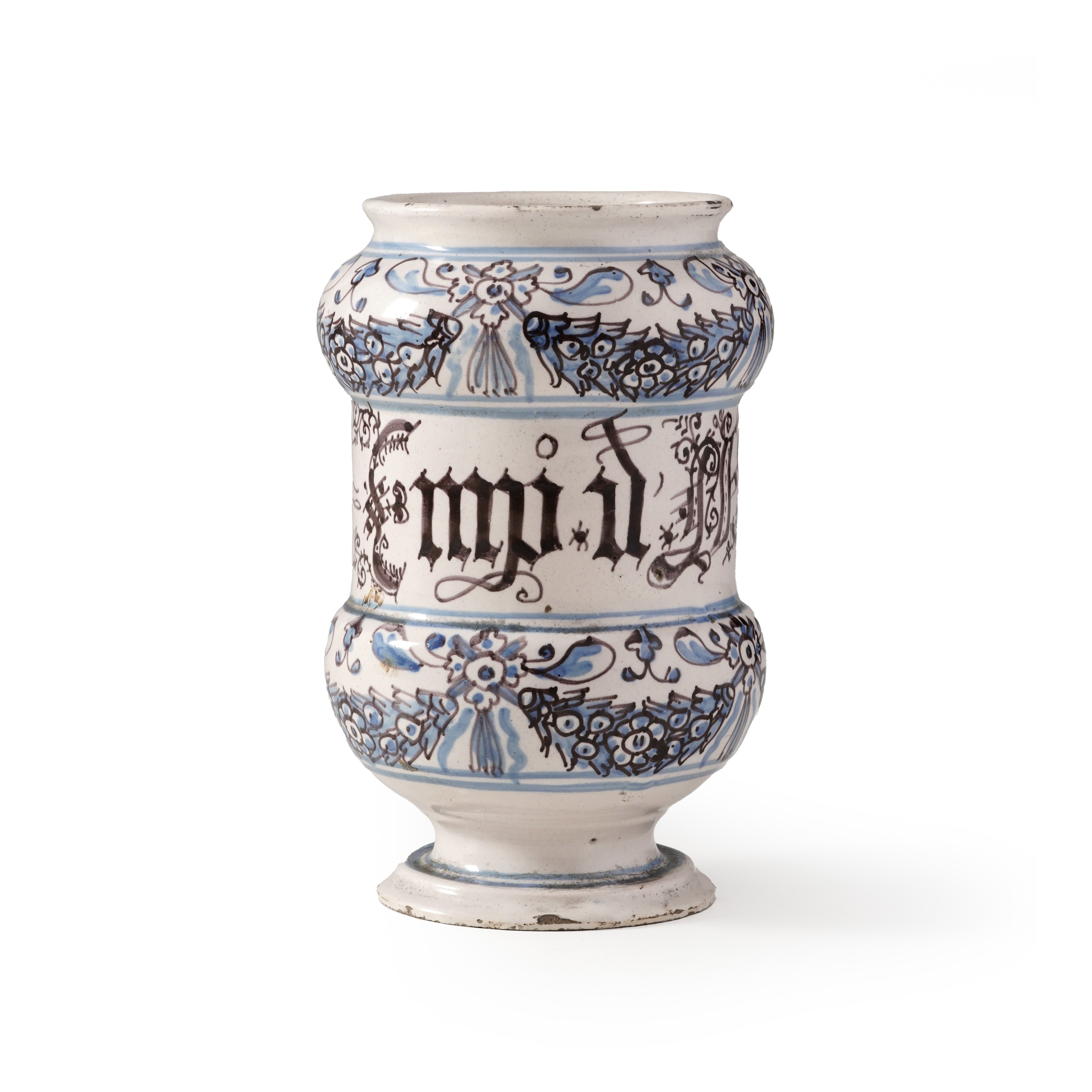 Maiolica. Altezza cm 18,5. Conservazione: ottima; qualche insignificante sbeccatura al bordo inferiore