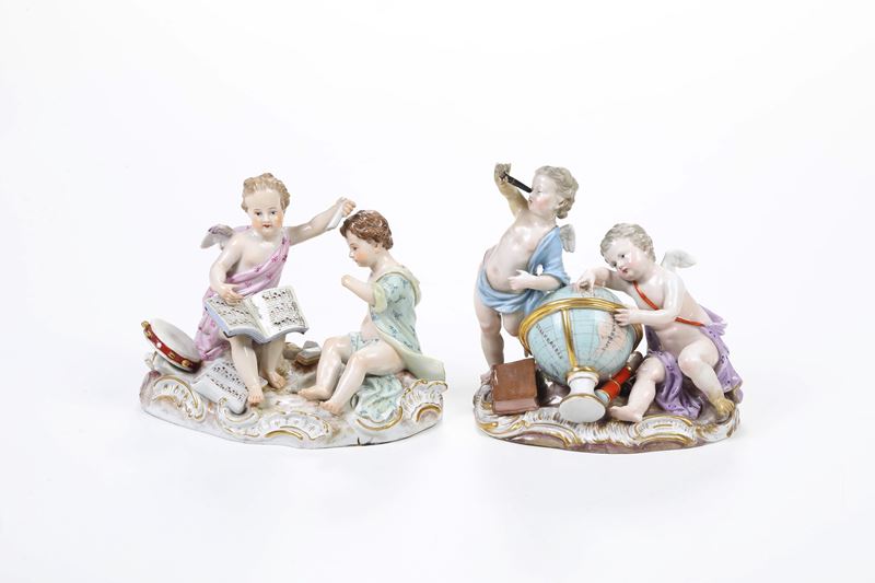 Coppia di gruppi. Allegorie della musica e dell’astronomia. Meissen, verso il 1900.