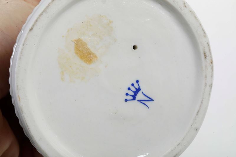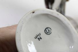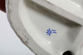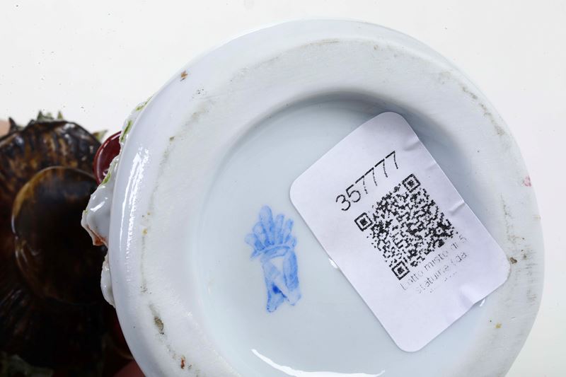 Porcellana. Firma E. Tezza. Altezza: cm 21,5. Conservazione: buona; piccole mancanze, in particolare alle dita della mano destra.