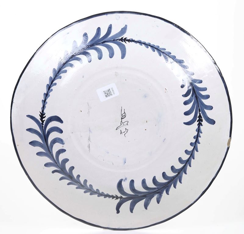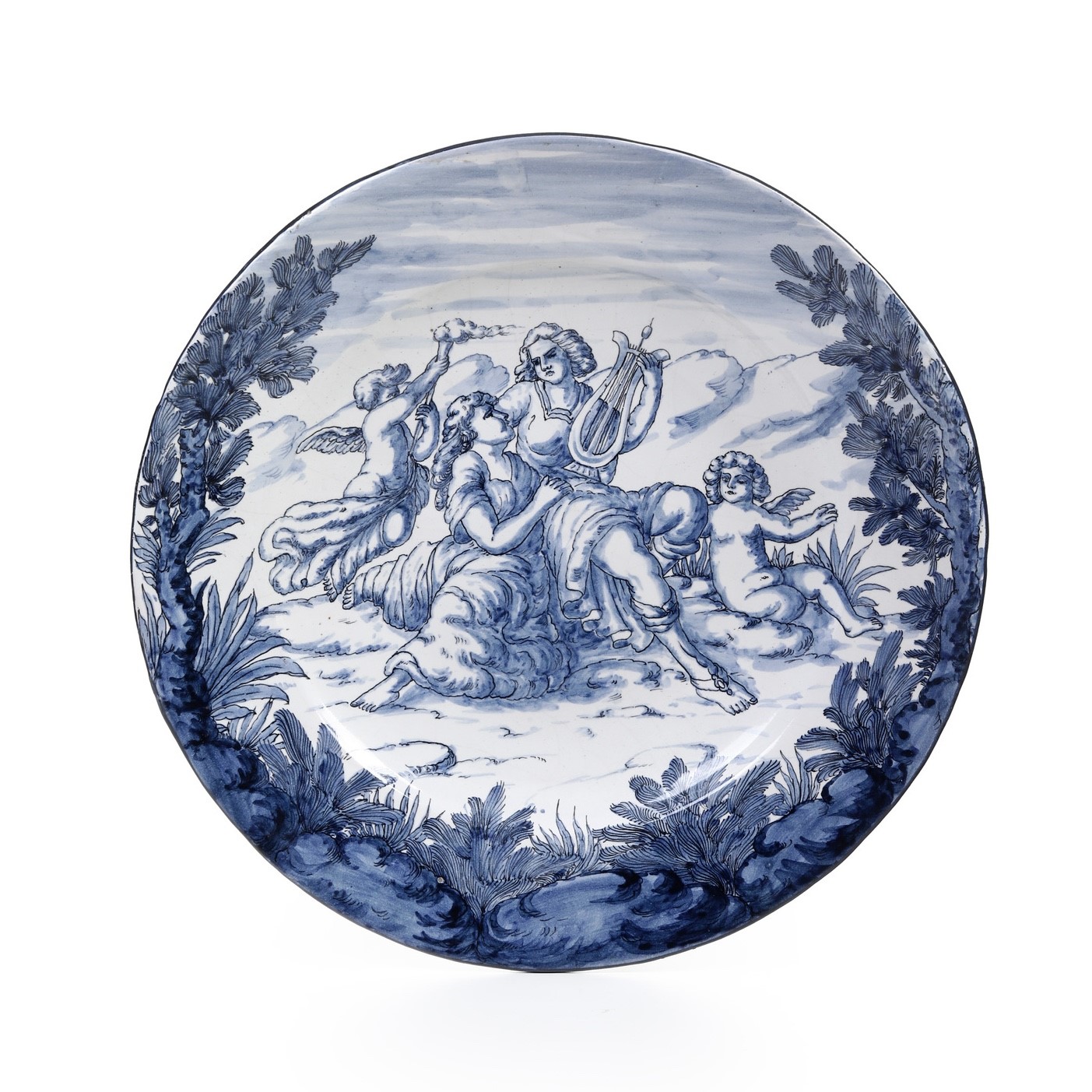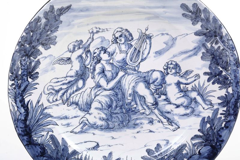 Maiolica. Marca: “fortezza e lettere “AD”. Diametro: cm 42,8. Conservazione: ottima.