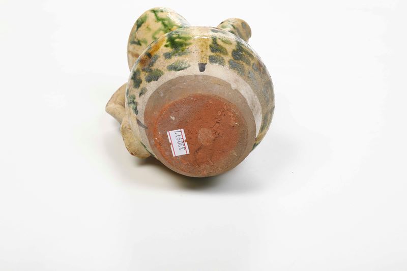 Terracotta ingobbiata e invetriata. Altezza: cm 14. Conservazione: ottima; piccole sbeccature.