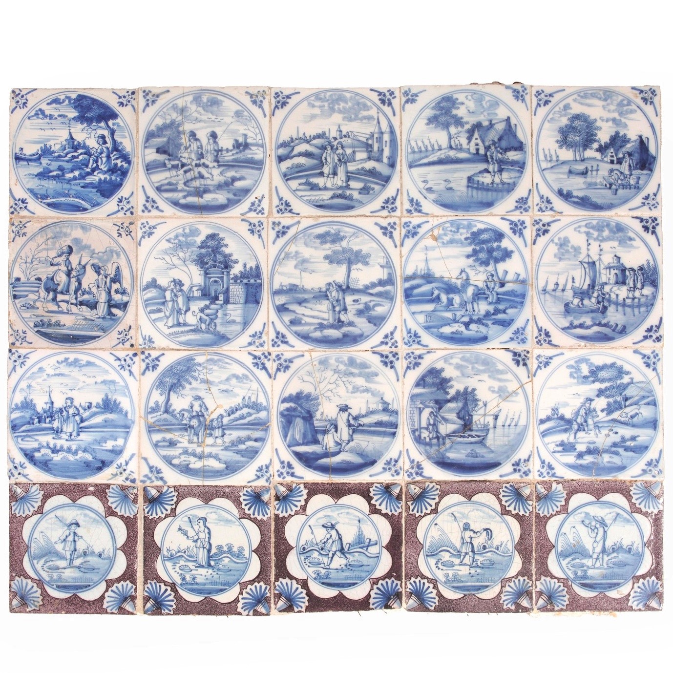 Maiolica. Marca: assente. Dimensioni pannello: cm 66x53.Conservazione: cinque piastrelle con felatura; qualche caduta di smalto.